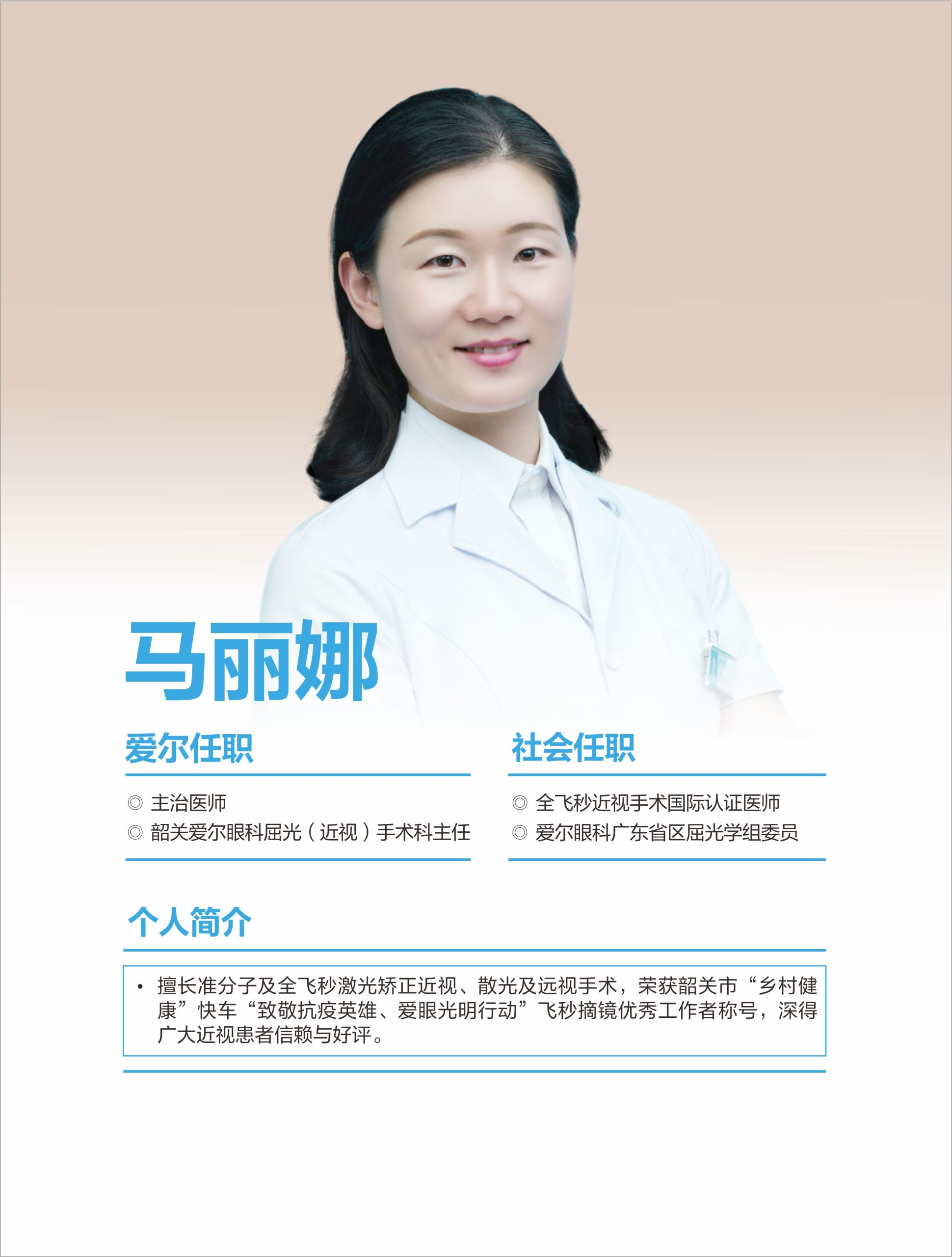 屈光近視矯正中心是韶關(guān)愛爾眼科醫(yī)院有限公司的重點(diǎn)科室,由中國(guó)衛(wèi)生行業(yè)標(biāo)準(zhǔn)《準(zhǔn)分子激光角膜屈光手術(shù)質(zhì)量控制》起草人、博士生導(dǎo)師王錚教授領(lǐng)銜,王愛琴副院長(zhǎng)親自掛帥,醫(yī)師馬麗娜等人組成一支技術(shù)精湛的近視矯正團(tuán)隊(duì),全面開展各類屈光手術(shù)。該科室具備矯正近視的全解決能力,開展超10種近視術(shù)式:飛秒激光、ICL晶體植入術(shù)等,全面矯正1800度內(nèi)近視以及600度內(nèi)散光。